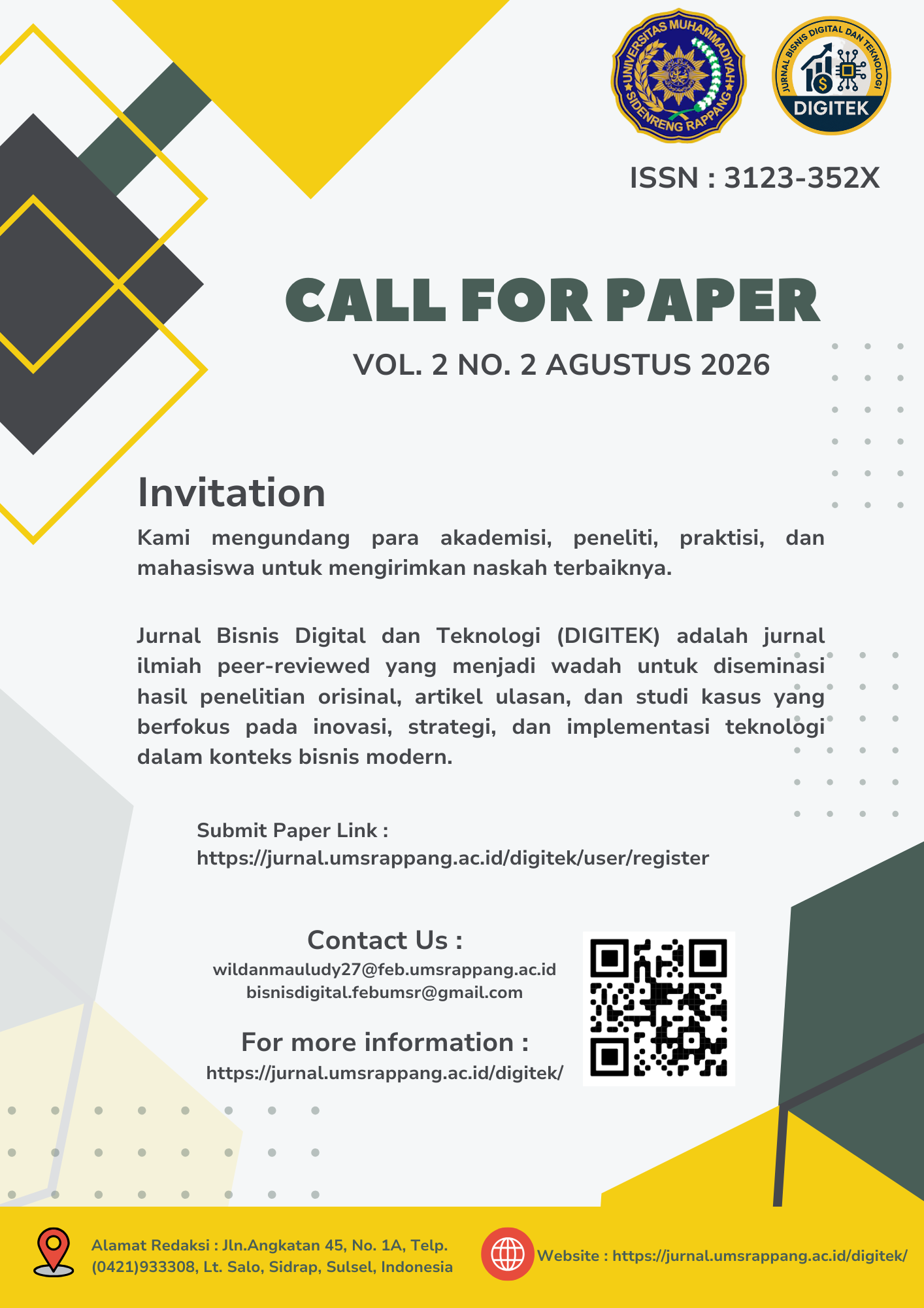 Call For Paper by the Digital Business and Technology Journal is managed by the Digital Business Study Program, Faculty of Economics and Business, Muhammadiyah University of Sidenreng Rappang.